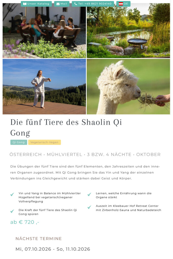 Die fünf Tiere des Shaolin Qi Gong – Österreich Mühlviertel | vom 07. bis 11. Oktober 2026