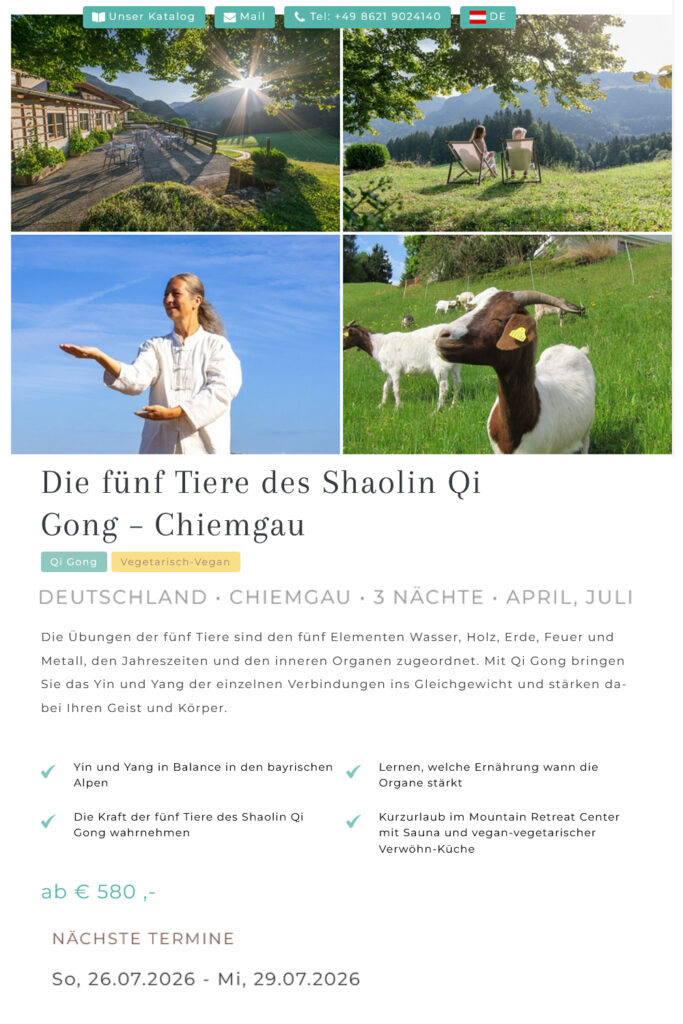 Die fünf Tiere des Shaolin Qi Gong – Chiemgau | vom 26. bis 29. Juli 2026